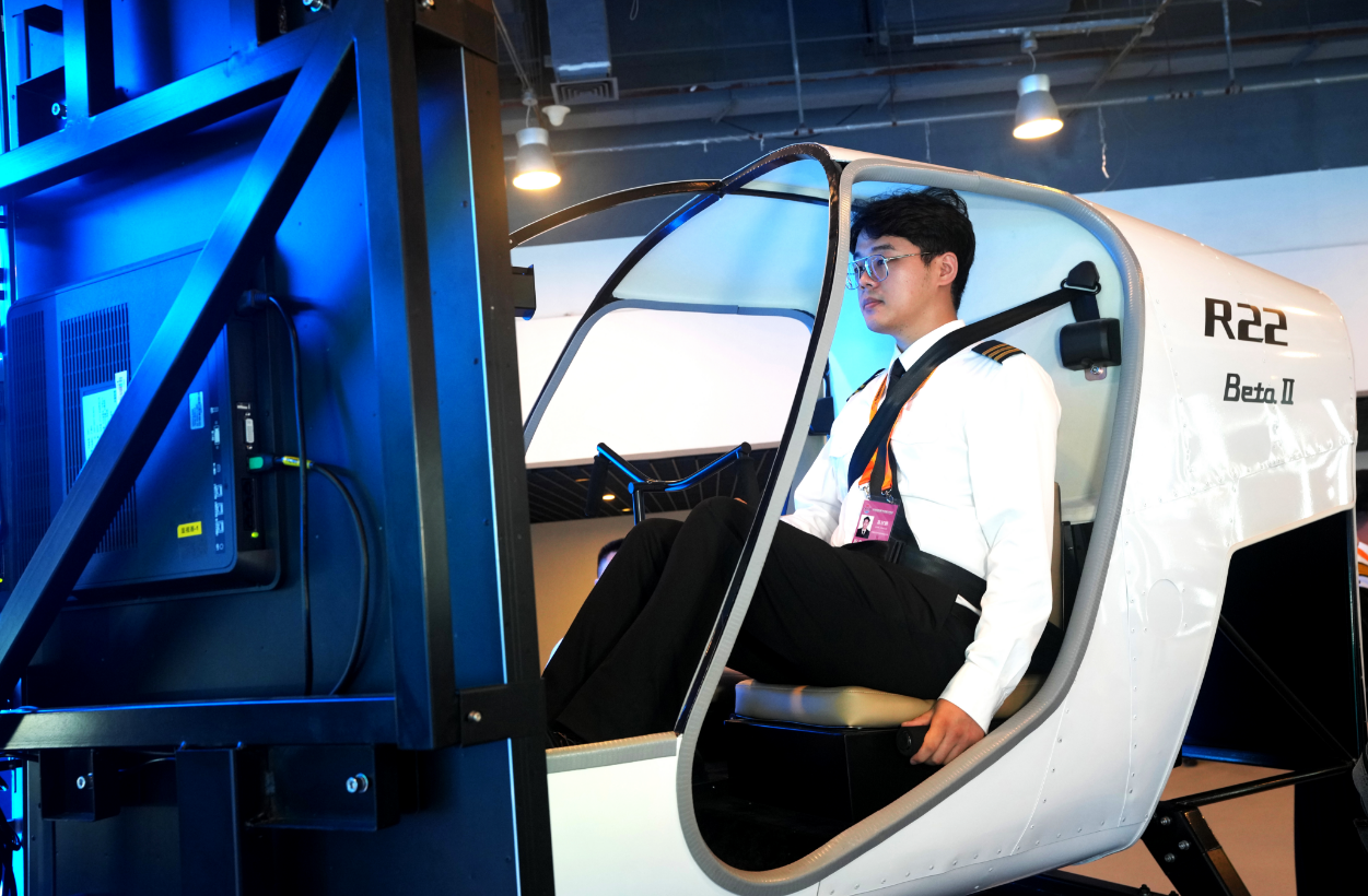 河南館內(nèi),視頻演示與實物展示相洽,科技感與時尚感兼具,為參會嘉賓提供了沉浸式的參觀體驗,成為服貿(mào)會上一道亮麗的風(fēng)景線。一是視聽效果震撼。長13米、高3米的超大柔性屏上,鄭盧“空中絲路”宣介視頻循環(huán)播放,引擎轟鳴、銀翼穿梭,讓人直觀感受鄭盧“空中絲路”的便捷高效;地屏上的“PPT+動漫”動態(tài)演示鄭盧“空中絲路”的全球航線網(wǎng)絡(luò)及河南航投在航空金融、通用航空、航空培訓(xùn)、航空制造等方面的階段成果。二是實物展選品新穎。立足“空中絲路”業(yè)務(wù)特色,實物展以不同涂裝“空中絲路”飛機模型為主,選取“鄭州號”、“鄭州-盧森堡空中絲綢之路號”、“藍(lán)口罩”、45周年“透視”紀(jì)念涂裝、中原龍浩“中”字形Logo涂裝的首架寬體貨機模型等為代表,通過講述特殊涂裝背后的故事,回顧“雙樞紐”戰(zhàn)略的實施、“雙貨航”的不斷壯大及中盧兩國人民守望相助的深厚友誼。三是互動體驗感強。展區(qū)一側(cè),黑色底座、白色駕駛艙的羅賓遜R22飛行模擬器成為“新寵”,參觀者排隊競相體驗。“這樣操控聯(lián)動駕駛桿、腳蹬……”在現(xiàn)場工作人員指導(dǎo)下,設(shè)備徐徐啟動,隨后拉起、上升、俯沖,視景系統(tǒng)中的畫面也快速變化,現(xiàn)場感十足。這臺飛行模擬器由河南航投旗下優(yōu)翼航空研發(fā)制造,采用國內(nèi)唯一自主研發(fā)的VSV視景系統(tǒng),擁有新一代1.8T級6自由度運動平臺,可進(jìn)行VFR目視本場五邊飛行科目訓(xùn)練、復(fù)雜氣象飛行訓(xùn)練、飛機主要故障及特情等應(yīng)急訓(xùn)練等。