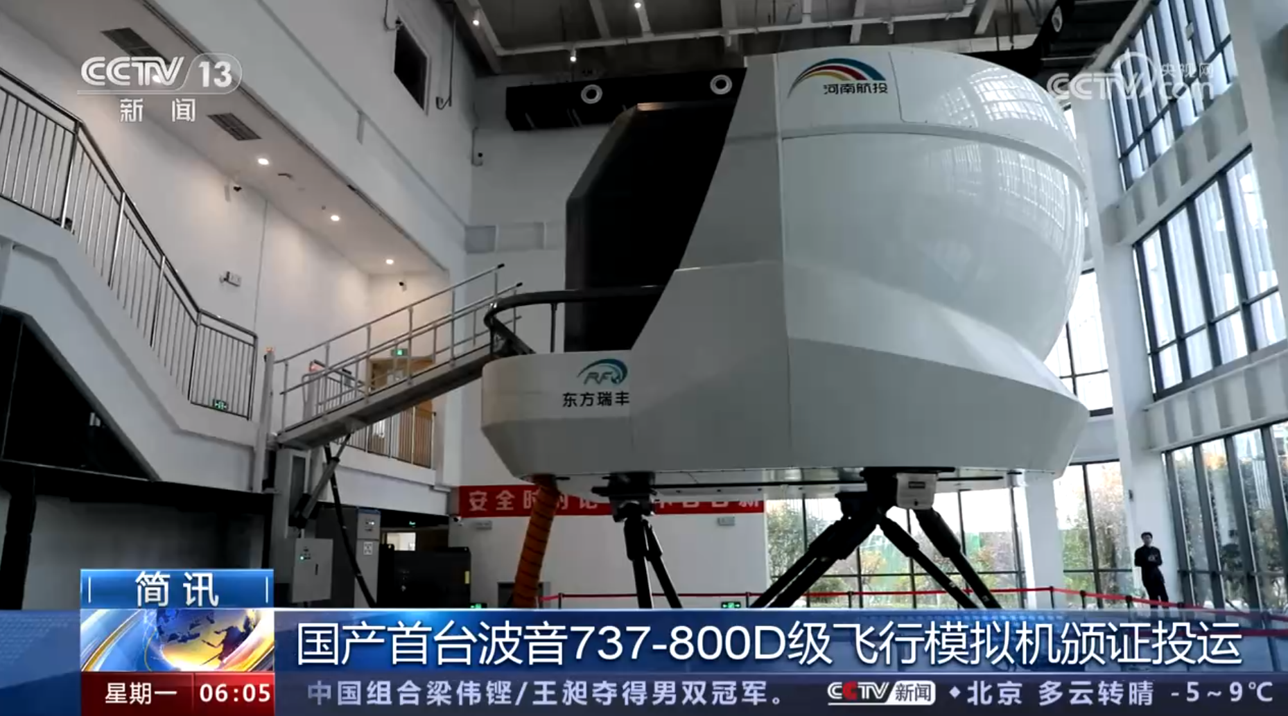 【央視朝聞天下】國產首臺波音737-800D級飛行模擬機頒證投運