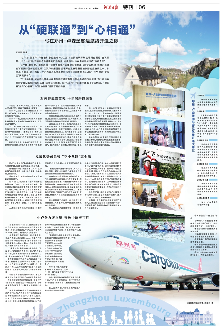 從“硬聯通”到“心相通”——寫在鄭州-盧森堡客運航線開通之際