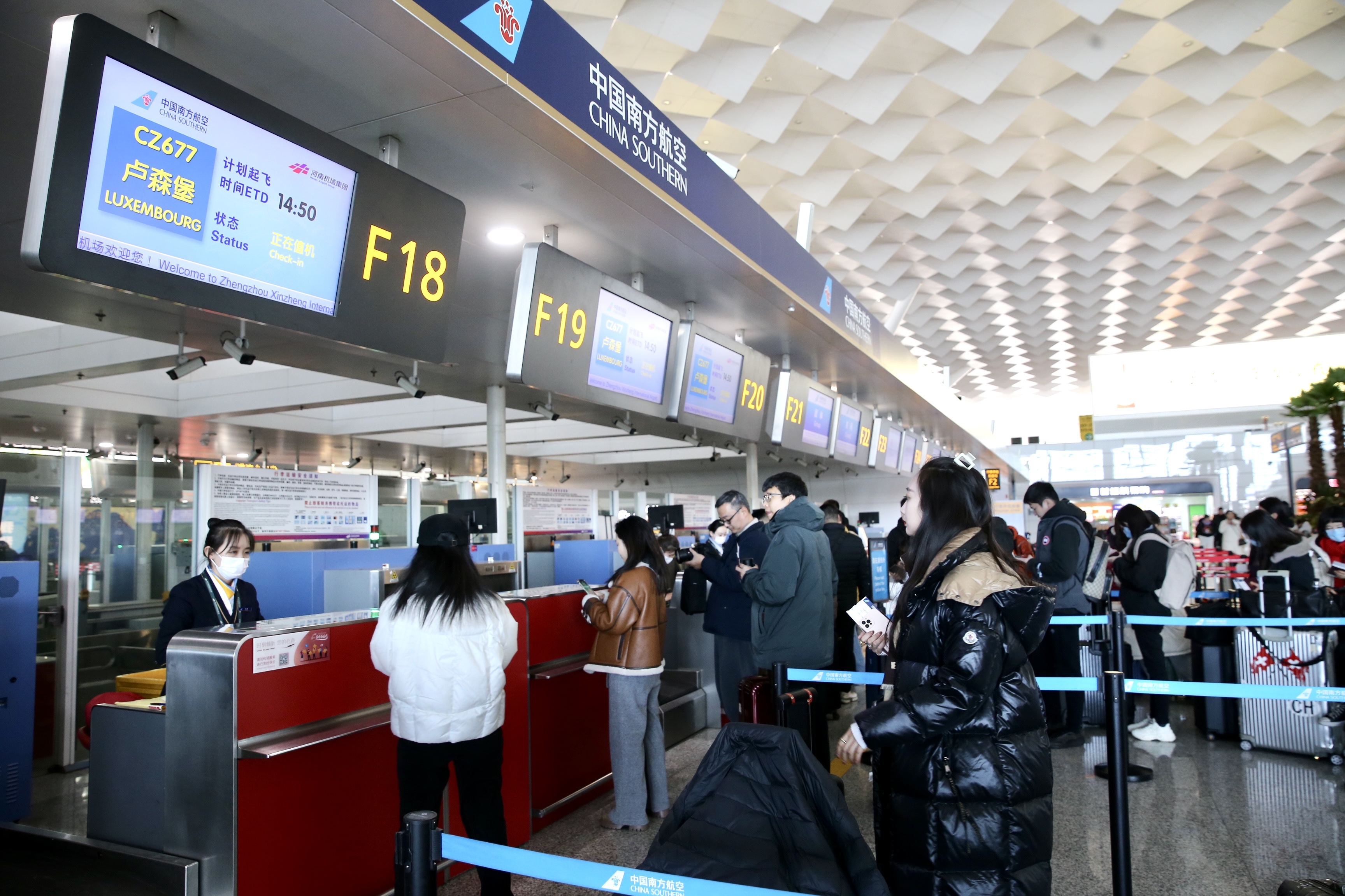 12月21日下午,鄭州-盧森堡客運航線首趟航班從鄭州機場起飛,這意味著中國與盧森堡之間首條直飛客運航線正式開通。鄭州-盧森堡“空中絲綢之路”再添人文往來的便捷通道,實現客貨運“兩翼俱豐”,中盧兩國人員往來便利化水平迎來質的飛躍。同時,這是盧森堡直飛亞洲的首條客運航線,也是盧森堡國際機場歷史上航程最遠的洲際客運航線之一。
