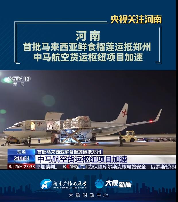 大象新聞客戶端 | 【央視關(guān)注河南】首批馬來(lái)西亞鮮食榴蓮運(yùn)抵鄭州