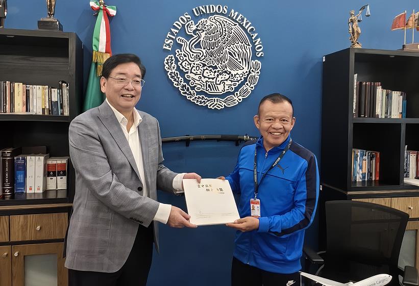 巴印對中豫航空集團代表團表示歡迎。他介紹說,近年來中資企業(yè)加速在墨投資興業(yè),兩國間雙邊貿(mào)易合作邁上新臺階。巴印表示,河南與盧森堡在航空運輸領(lǐng)域的合作取得了有目共睹的成績,“雙樞紐”模式為跨國合作提供了良好的范本,希望中豫航空與墨西哥民航企業(yè)加深交流合作,探索共贏發(fā)展。墨西哥民航局對中墨航空運輸市場持續(xù)穩(wěn)定發(fā)展充滿信心,將支持中墨航空公司共同經(jīng)營好雙方航空運輸市場,更好服務(wù)于兩國經(jīng)貿(mào)交流需求。