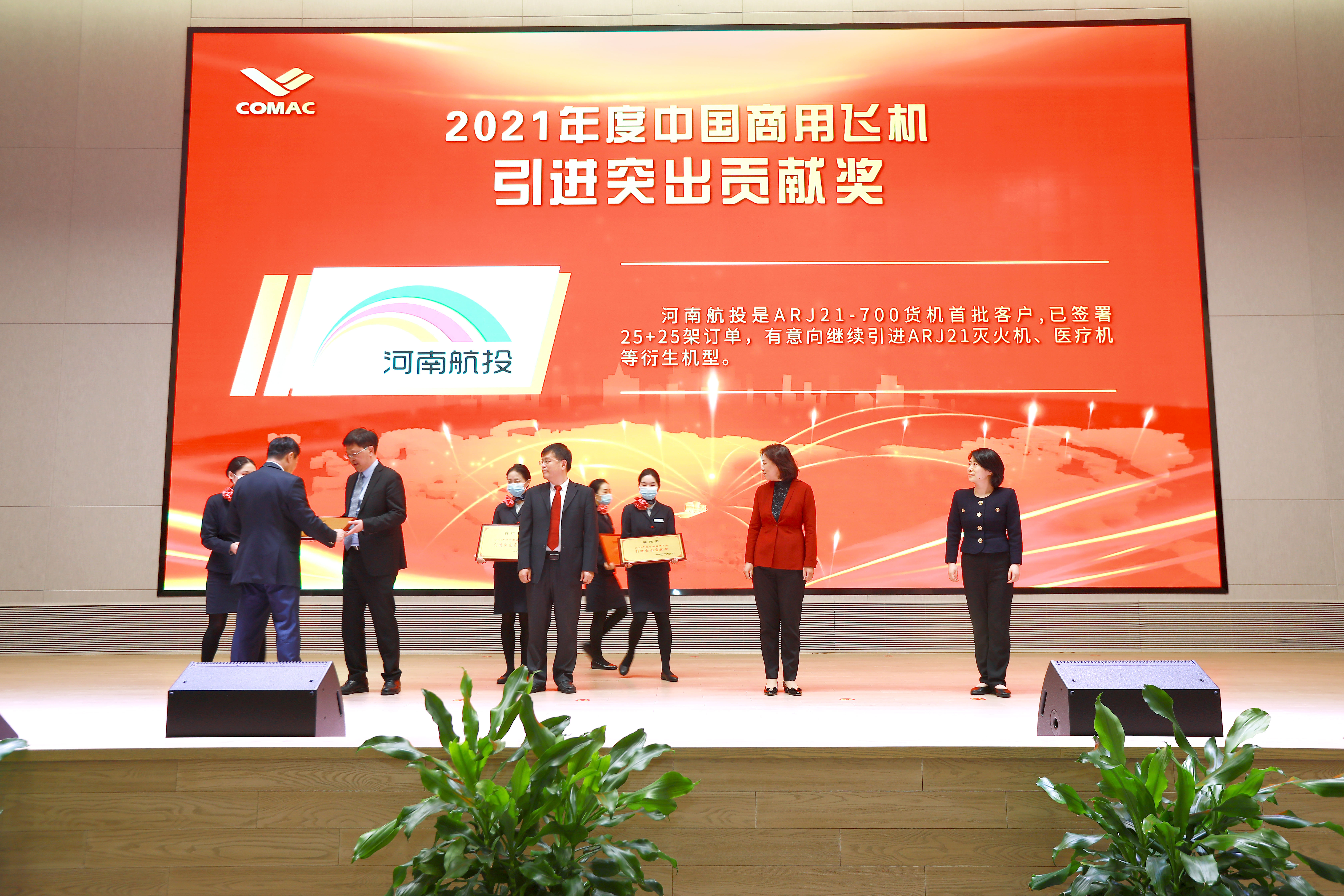 10月26日,中國商飛2022年度客戶大會在嘉興召開。會上頒發了第一屆中國商用飛機“翱翔獎”。由中國商飛黨委書記、董事長賀東風為河南航投頒發“翱翔獎—— 2021年度中國商用飛機引進突出貢獻獎”,這是中國商飛首次將國產商用飛機相關獎項授予河南本土企業,對國產貨機進一步拓展市場具有重要意義。