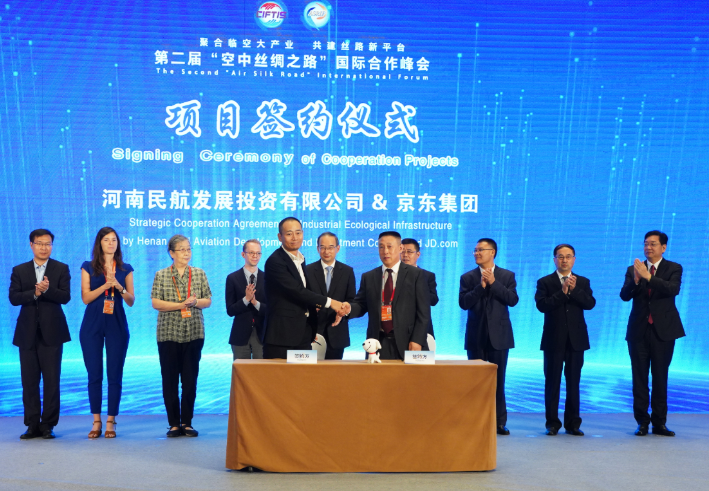 在隨后的成果發(fā)布環(huán)節(jié),河南航投總經(jīng)理、黨委副書記、副董事長(zhǎng)劉建葆代表公司分別與中航通用飛機(jī)有限公司(以下簡(jiǎn)稱航空工業(yè)通飛)、法國Simaero控股公司、中國檢驗(yàn)認(rèn)證(集團(tuán))公司(以下簡(jiǎn)稱中檢集團(tuán))、京東集團(tuán)簽署戰(zhàn)略合作協(xié)議。黃強(qiáng)及中外嘉賓代表見簽。趙磊主持發(fā)布圖書《“一帶一路”高質(zhì)量發(fā)展——河南“空中絲綢之路”的生動(dòng)實(shí)踐》。該書以紀(jì)實(shí)筆觸全方位記錄了河南主動(dòng)融入“一帶一路”建設(shè),向天尋路,架起一條互利各國交通運(yùn)輸、聚合經(jīng)貿(mào)文化發(fā)展的“空中絲綢之路”,真實(shí)展現(xiàn)出河南打造內(nèi)陸開放新高地、實(shí)現(xiàn)中原更出彩的新局面。