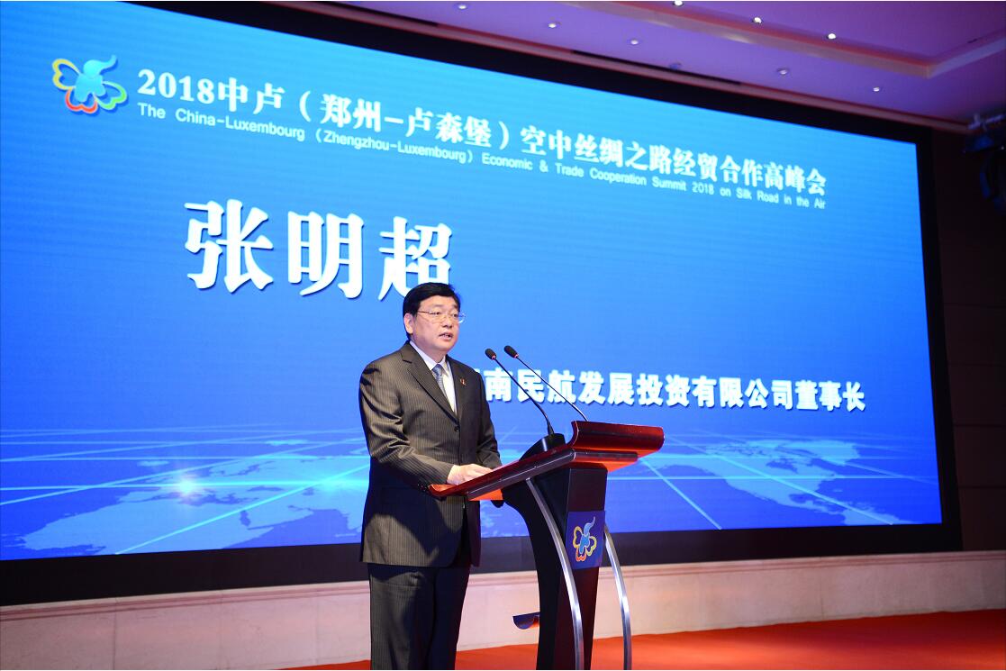 4月17日,2018中盧(鄭州—盧森堡)“空中絲綢之路”經貿合作高峰會在鄭州舉行,來自河南和盧森堡兩地的政府官員、企業代表、專家學者碰撞思想火花,凝聚智慧力量。河南航投黨委書記、董事長張明超出席峰會并發言。